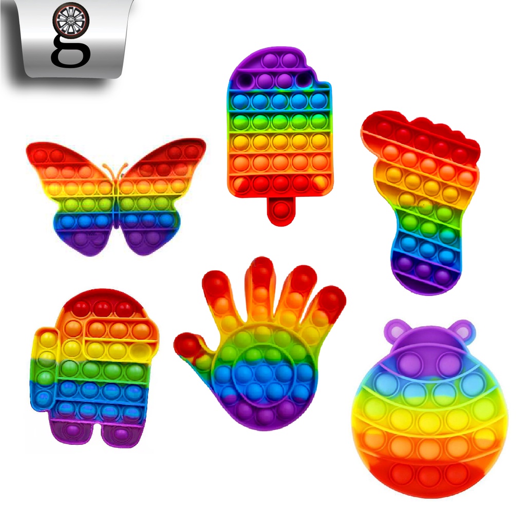 BUBBLE POP IT FIDGET TOY RAINBOW || MAINAN EDUKASI ANAK KARAKTER PUSH POP IT